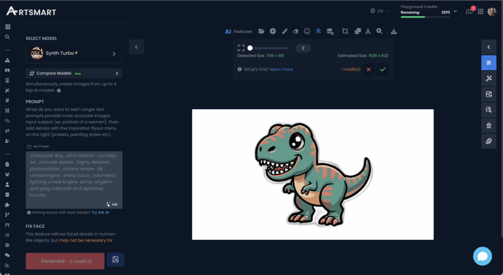 Artsmart.ai is an AI image generator that creates awesome, realistic images from simple text and image prompts.